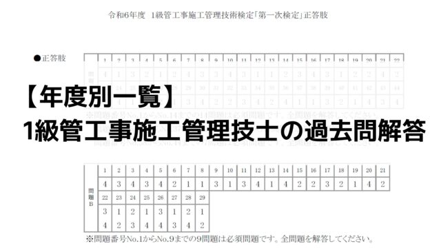 【年度別】1級管工事施工管理技士の過去問解答一覧|令和7年~平成22年