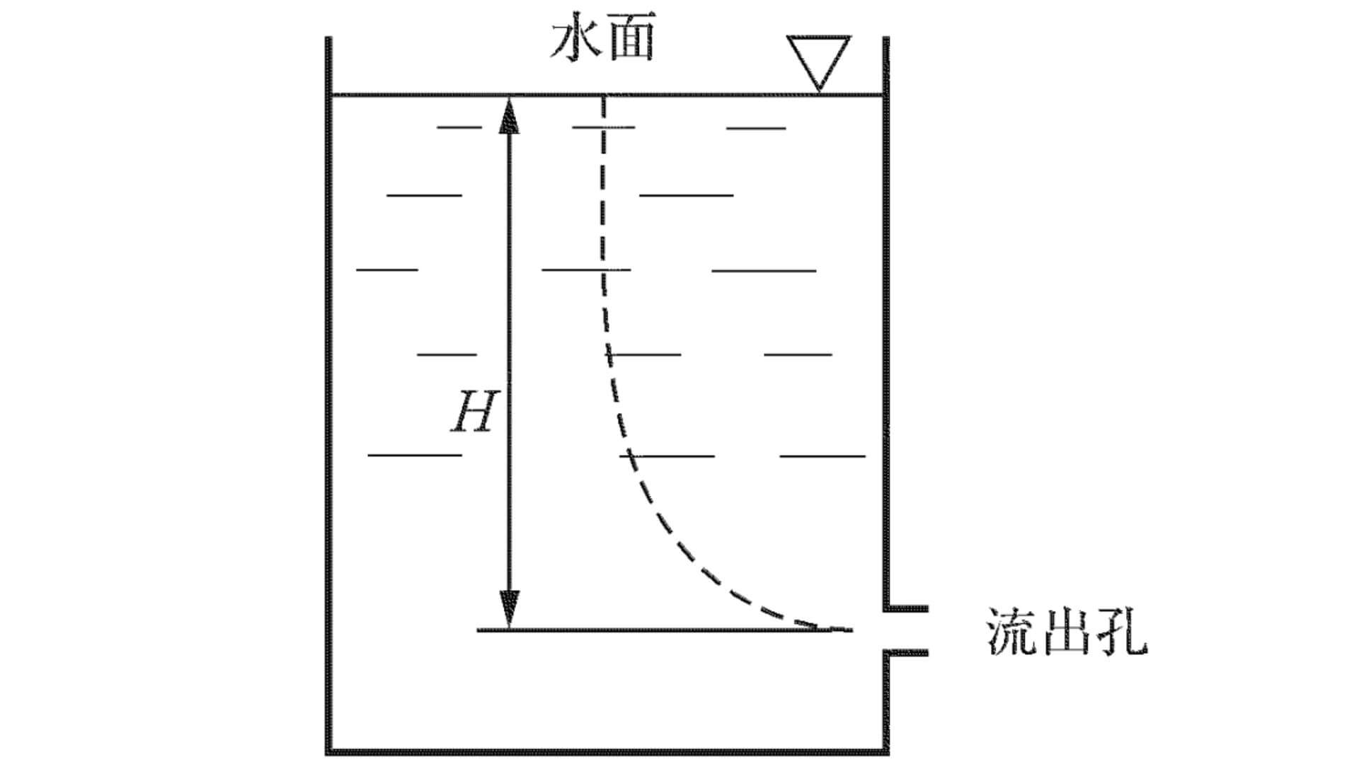 ただし、gは重力加速度、ρは流体の密度、Hは流出孔から水面までの高さとする。